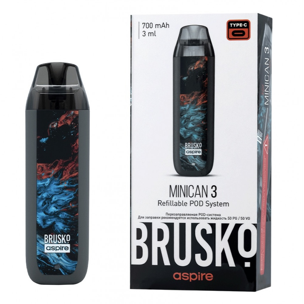 Перезаправляемая Под-Система Бруско Миникан 3 (Brusko Minican 3) 700 mah, Серый Флюид - купить в Тайге