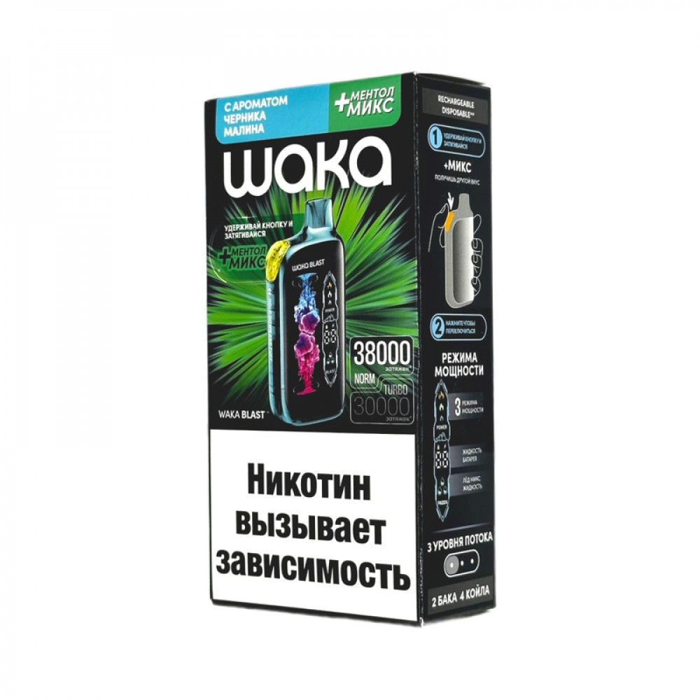 WAKA BLAST 38000 Hard - Черника малина + ментол микс - купить в Тайге