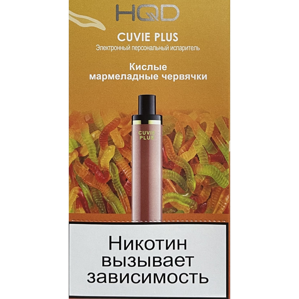 HQD видыCuvie Plus (Куви Плюс) HQD вкусыКислые Мармеладные Червячки HQD количество в блоке6 шт